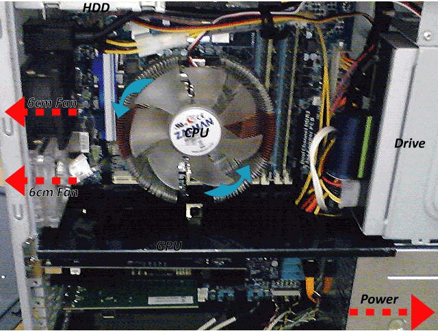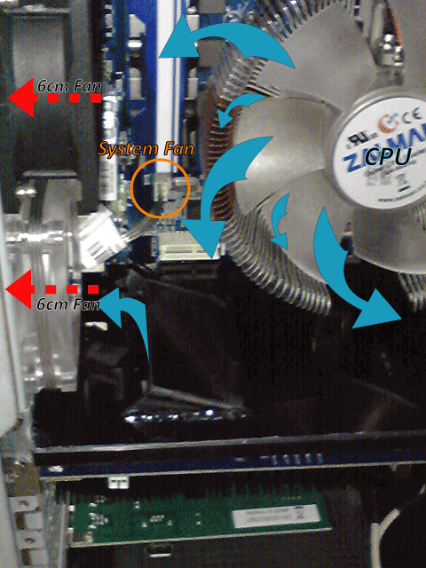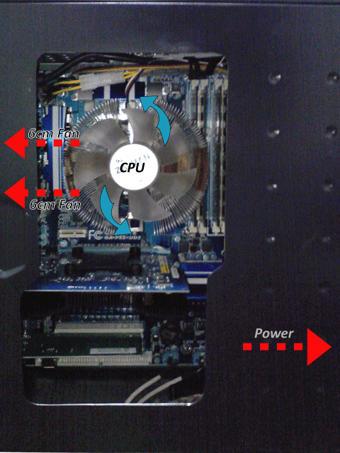 お、そうか、6cmファンにケース下側の